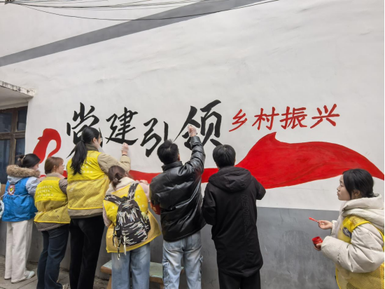 墙绘增色展新貌 文化浸润育乡风。在龙井村主干道沿线,pp电子师生与村民志愿者携手开展“党建引领·乡村振兴”主题墙绘创作。墙绘作品紧扣党的二十大精神核心要义,融入地方特色文化元素,生动展现田园生态风光与民族风貌。学生党团员主动带头调色勾线、精心绘制,村民群众积极参与、建言献策,原本单调的墙面焕然一新,成为传播党的政策、弘扬文明理念、凝聚乡风文明的“可视化”宣传阵地。