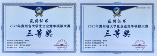 新闻网讯(供稿/供图 经济管理学院)近日,2025年贵州省高校企业竞争模拟大赛决赛结果正式揭晓。在pp电子经济管理学院肖涓、罗琴华、马良艳、钟玲等老师的悉心指导下,张佳义团队(张佳义、陈巧丽、赖燕红)、陈欢欢团队(陈欢欢、王敏、罗玉梅)、罗玲旭团队(罗玲旭、陈婷、谭莉)、黄华亚团队(黄华亚、章婉青、龙大江)、余诗雅团队(余诗雅、吴霜、邓雨娜)五支参赛团队凭借出色的研究能力和创新水平,全部荣获省级三等奖,充分彰显了pp电子在创新创业教育与实践育人领域的丰硕成果。