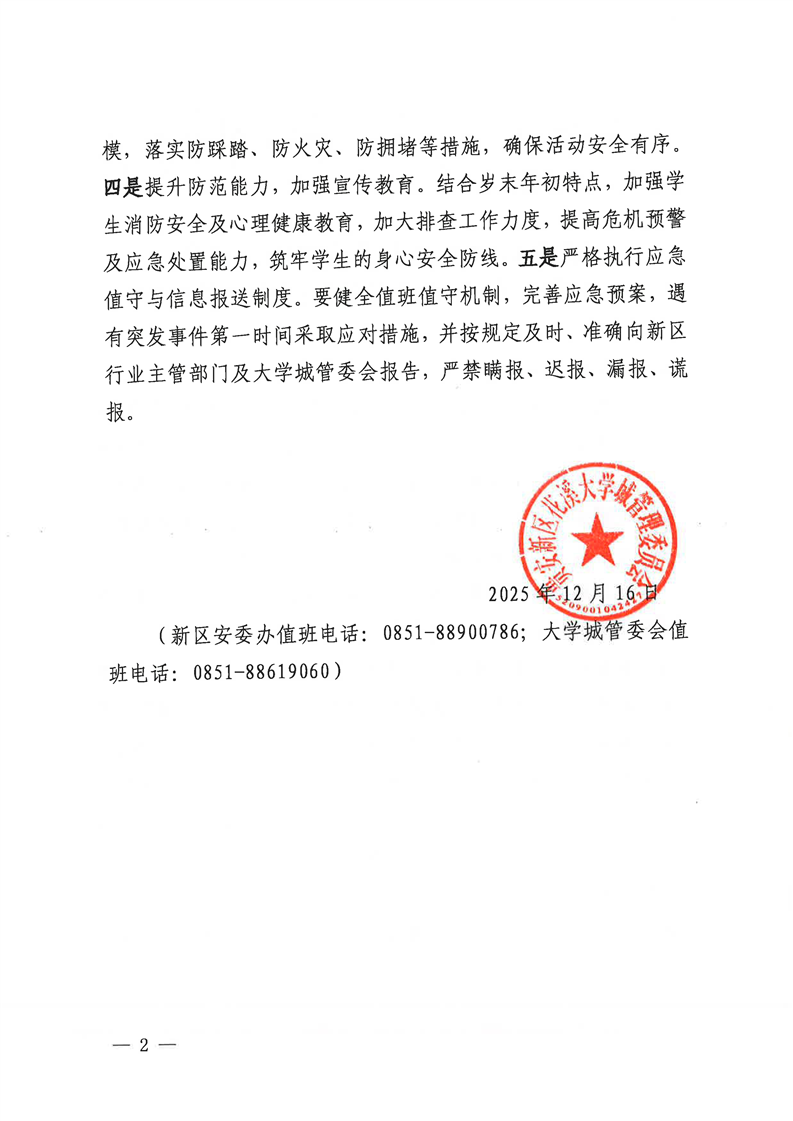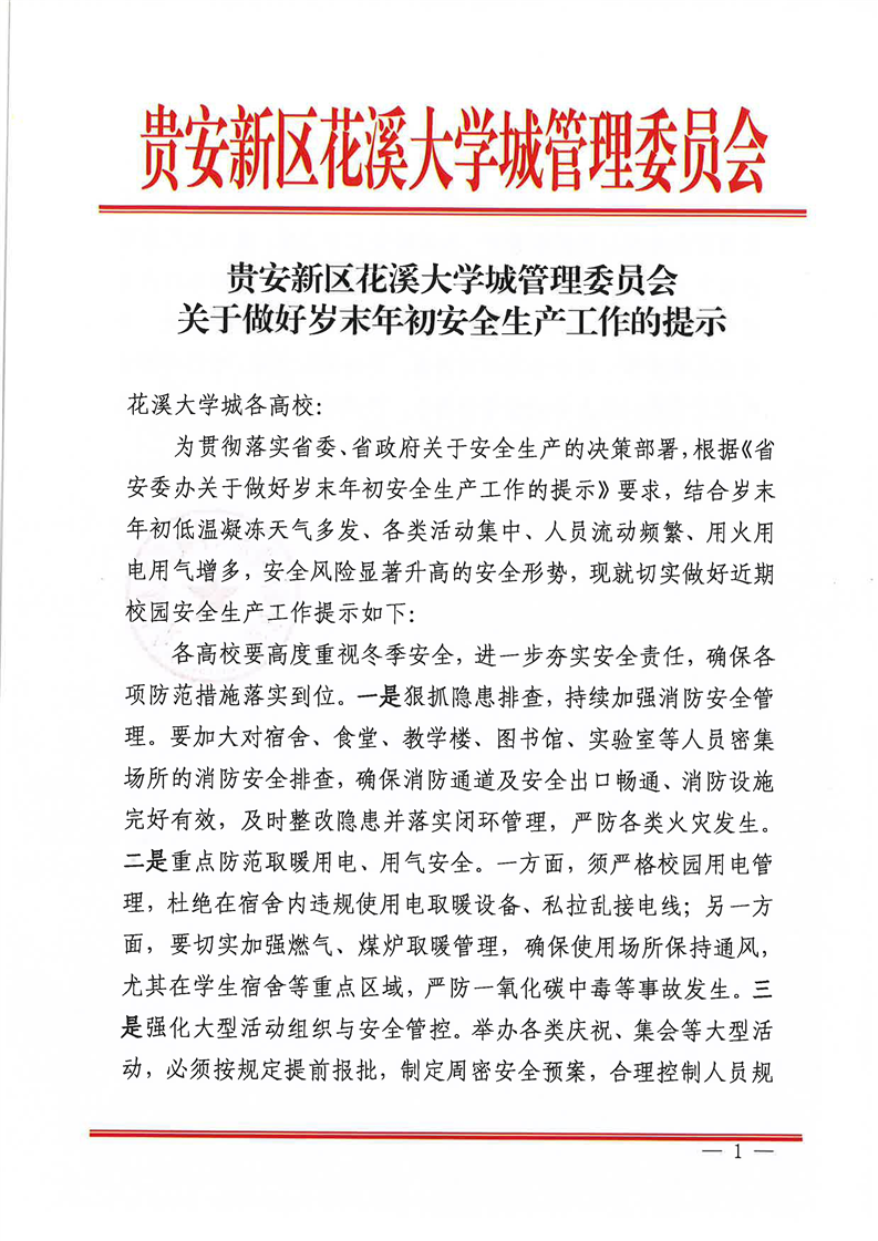 实践实训中心转发贵安新区花溪大学城管理委员会关于做好岁末年初安全生产工作的提示