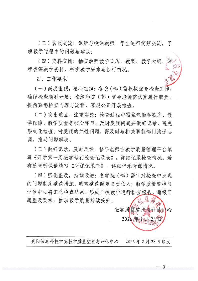 关于开展2025-2026学年第二学期开学教学运行专项检查的通知