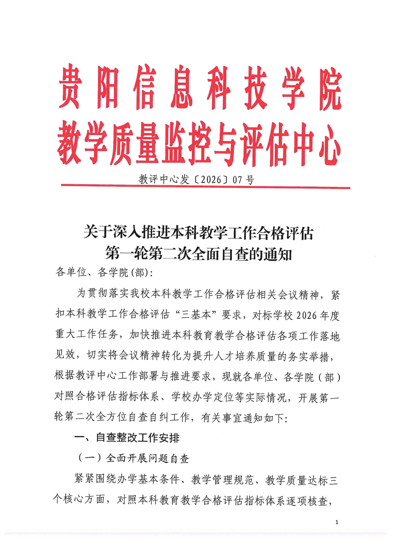 关于深入推进本科教学工作合格评估第一轮第二次全面自查的通知