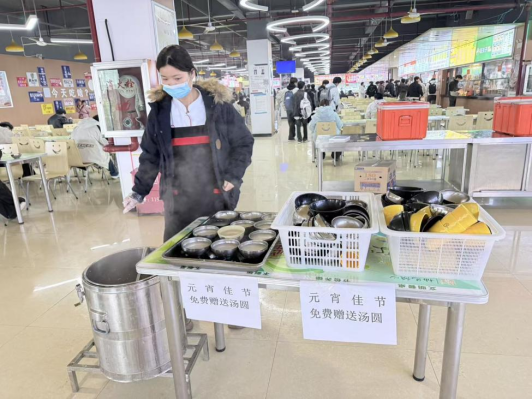 暖心保障迎开学,烟火温情润心田。学子陆续返校,后勤保障进入关键阶段。面对激增的人流,各食堂、商铺全员上岗,确保师生随时能吃上热乎饭。在保障菜品价格稳定、分量充足的同时,后勤处引导商户结合春季养生需求,推出营养套餐、特色小吃等多元菜品,满足师生多样化口味。恰逢元宵佳节,后勤处联合一、二食堂为返校师生免费派送汤圆,以佳节暖意传递校园关怀。用餐高峰期,后勤人员下沉一线,动态监测菜品供应、引导有序排队、监督加工流程,让师生吃得放心、暖心,校园里的“烟火气”成为新学期最温暖的底色。