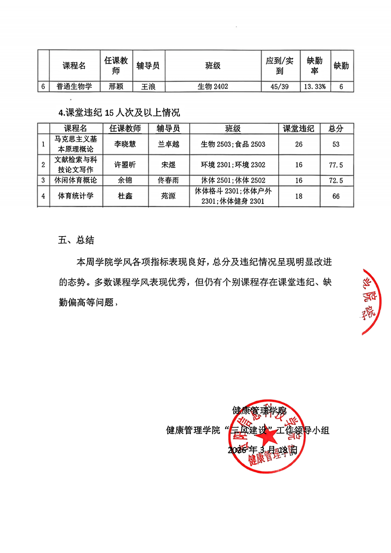 健康管理学院2025-2026学年第二学期第3周学风巡查工作简报
