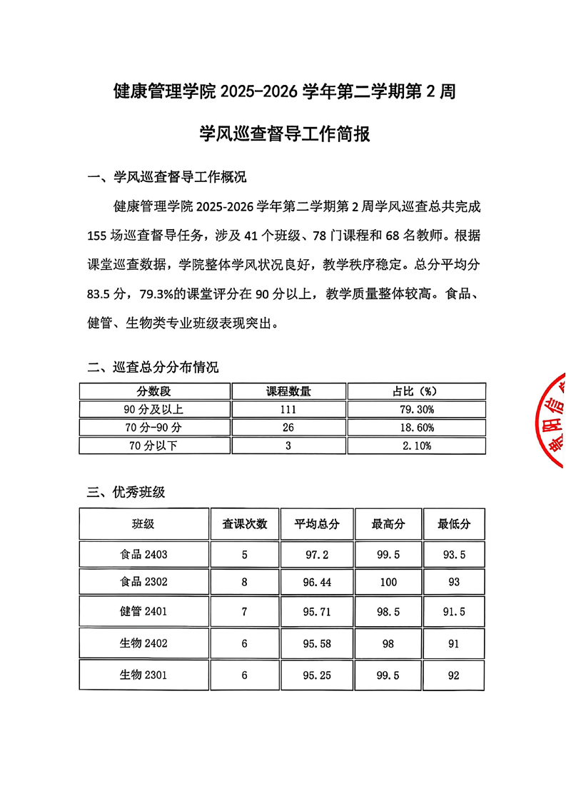 健康管理学院2025-2026学年第二学期第2周学风巡查工作简报
