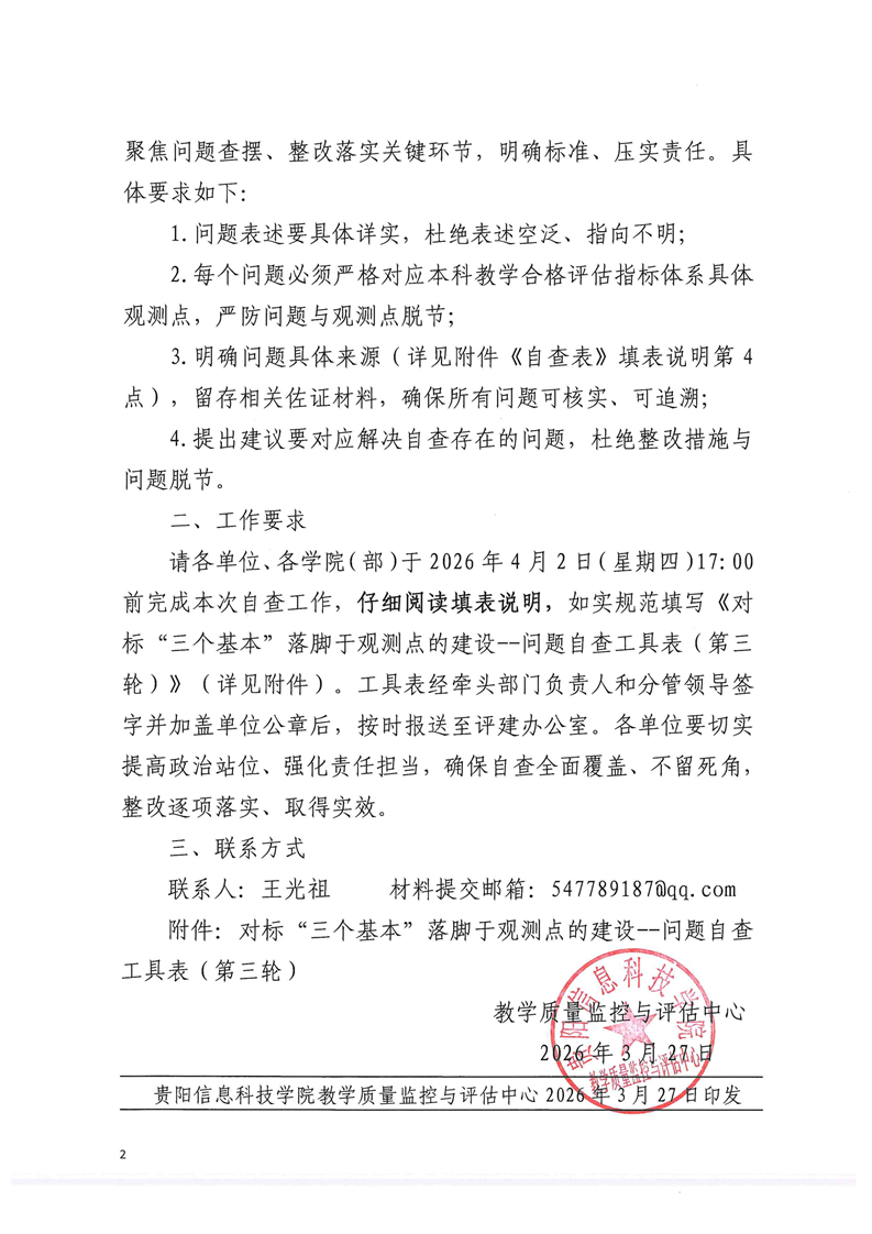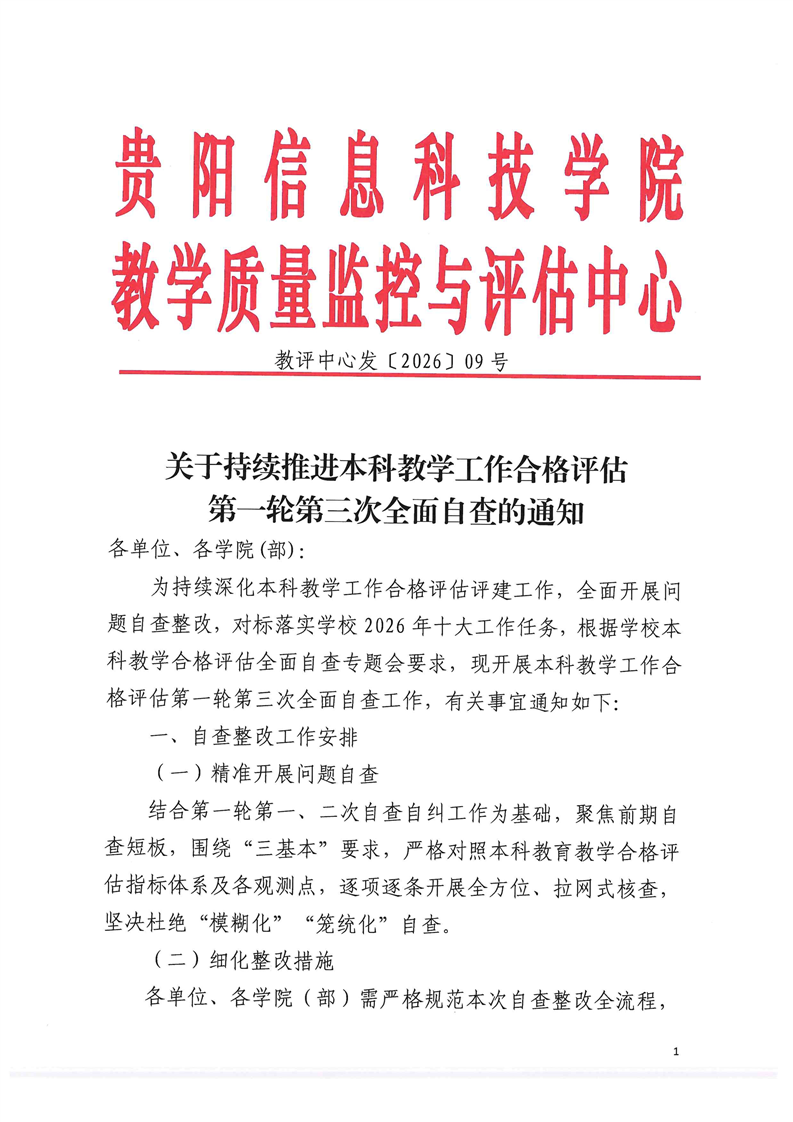 关于持续推进本科教学工作合格评估第一轮第三次全面自查的通知