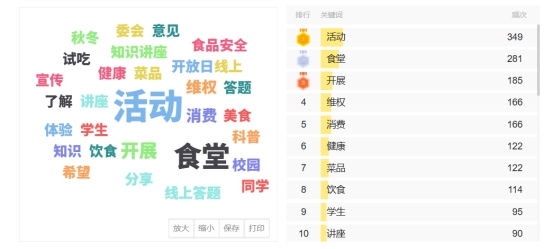 从活动反馈与关键词云来看,“活动”“食堂”“维权”“消费”等成为高频热词,既反映出同学们对本次消费维权科普活动的高度关注,也体现了大家对校园消费安全、饮食健康等话题的重视。同学们纷纷表示,通过本次答题系统学习了消费维权知识,对防范校园贷、识别虚假宣传等有了更清晰的认识,切实提升了自我保护能力。