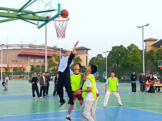 赛场上,球员们身姿矫健、配合默契,攻防转换间尽显竞技体育的魅力,抢断、突破、上篮等精彩瞬间轮番上演,现场欢呼声、加油声此起彼伏,洋溢着青春热血与蓬勃活力。校团委裁判队和篮球裁判协会秉持公平公正,维护了良好的赛场秩序。