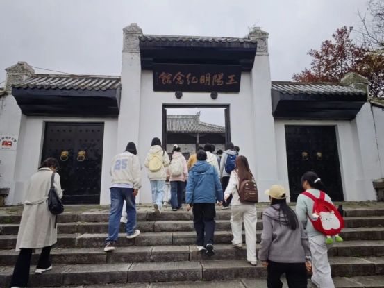 在沉浸式研学环节,学员们跟随专业讲解员,依次走进阳明洞、龙冈书院、王文成公祠、阳明文化陈列馆,循着王阳明“龙场悟道”的历史足迹,聆听其生平事迹与思想历程,深入领悟“心即理、知行合一、致良知”的核心要义。在文化体验环节,全体学员集体学习诵读《教条示龙场诸生》,在经典吟诵中感受传统文化的深厚底蕴;围绕“悟心学精神·担青马使命”主题开展互动研讨,结合青年马克思主义者的责任与担当,探讨如何将阳明心学中的修身智慧融入日常学习与实践,以坚定的理想信念践行初心使命,实现传统文化浸润与思政素养提升的有机融合。