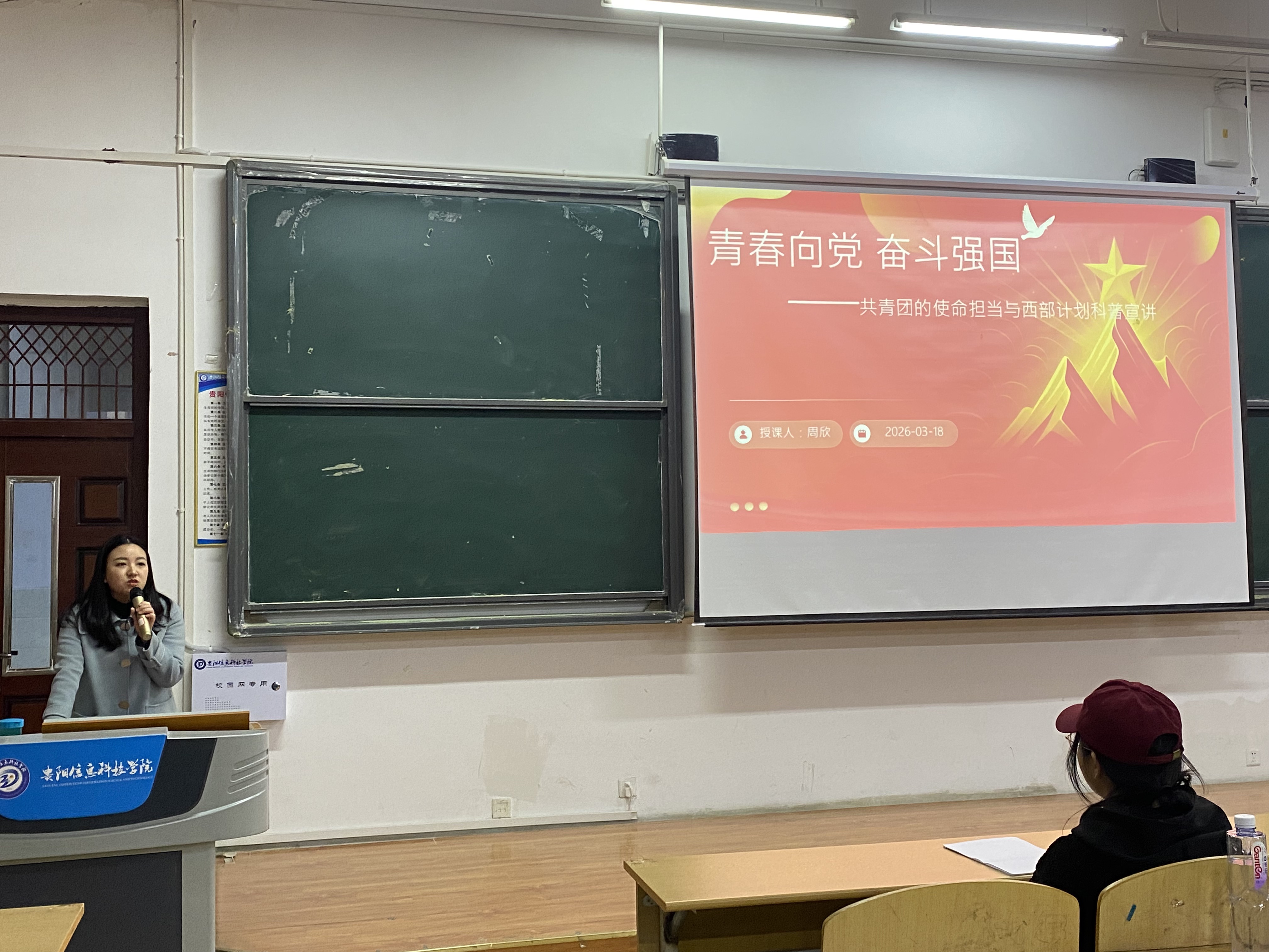 3月18日,经济管理学院团总支书记周欣老师围绕“青春向党奋斗强国—共青团的使命担当与西部计划科普”开展专题授课,深入阐释新时代共青团的职责使命,详细解读西部计划相关政策,鼓励广大青年将个人理想融入国家发展和民族复兴伟业。课堂上,学员专心听讲、积极互动,围绕政策细节、服务保障、发展路径等问题踊跃提问,老师逐一细致解答、充分交流。课后研讨氛围浓厚,学员在思想交流中进一步坚定理想追求,自觉将青春使命转化为扎根基层、服务社会、报效国家的行动自觉。