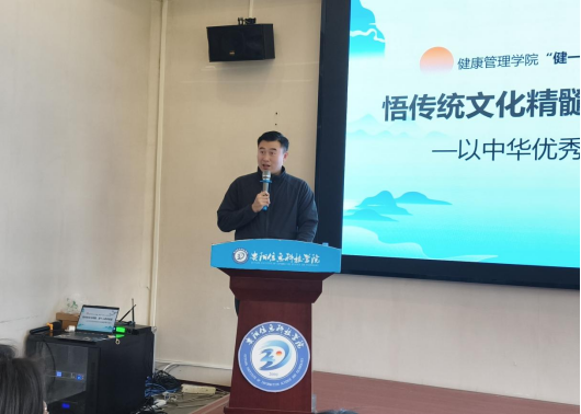 为深入落实学校“六度党建”工作要求,聚焦理论学习有高度,思政教学有“广”度,持续丰富“健一面·康一声”思政育人品牌内涵,强化“马院+书院”协同育人实效,4月2日下午,健康管理学院邀请学校党委委员、纪委书记、阳明书院执行院长黄晓儒在阳明书院开展“悟传统文化精髓,塑个人素养根基——以中华优秀传统文化赋能青年成长”思政大讲堂。本次活动聚焦学院思政育人核心,将中华传统文化精髓与大学生个人素养培育、学院专业特色相融合,学院师生党员、“青马班”学员齐聚一堂,共赴一场文化润心、理论铸魂的思想盛宴。
