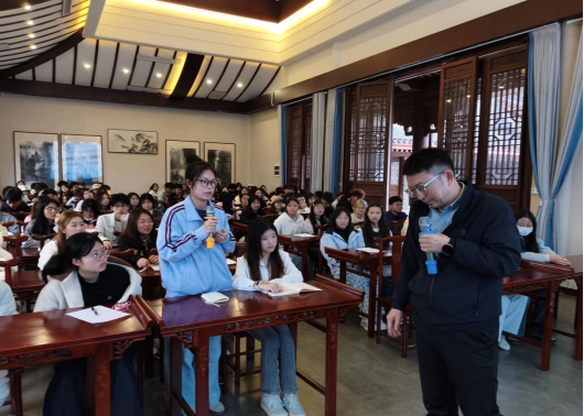 在互动交流环节,多名学生结合此前阳明文化园研学经历,依次分享学习感悟,畅谈中华优秀传统文化对自身思想成长、职业规划与责任担当的启发。随后,同学们围绕个人素养提升、优秀传统文化践行等问题踊跃提问,黄晓儒书记逐一细致解答,现场交流氛围热烈,进一步深化了思想共鸣与学习成效。