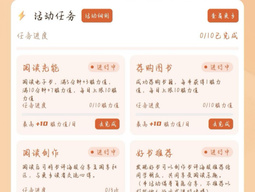 活动依托国家知识服务平台可知平台展开,采用“脑力值”养成模式,同学们通过线上阅读、图书荐购、账号绑定与机构认证等基础任务积累脑力值,还可通过撰写书评、邀请好友参与、社区互动点赞等进阶任务提升积分。活动全程依托公众号、官网、H5页面等多渠道入口,支持手机、电脑等多终端参与,方便同学们利用碎片化时间完成阅读与打卡。活动期间,同学们积极投身电子书籍阅读,踊跃参与书评创作,在平台内形成阅读交流、互助比拼的良好氛围,各项任务参与度高,整体秩序井然,充分展现出青年学子热爱阅读、乐于分享的精神风貌。