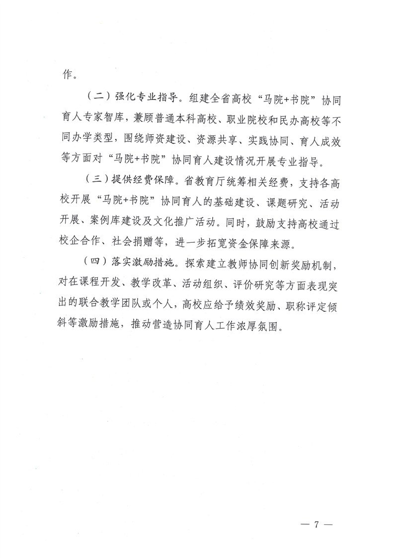 省教育厅办公室关于推进高校“马院+书院”协同育人工作的通知