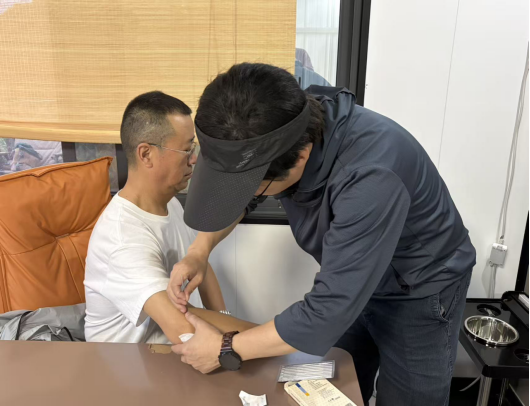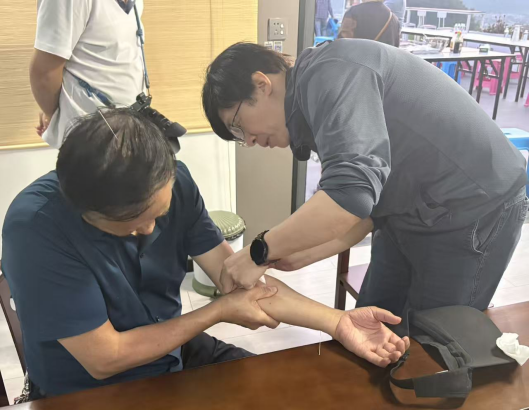 主题活动现场,杨波副校长发挥专业优势,现场开展公益义诊活动,为协会成员提供中医针灸诊疗服务,治疗效果显著,得到现场参会人员的高度认可与一致好评。