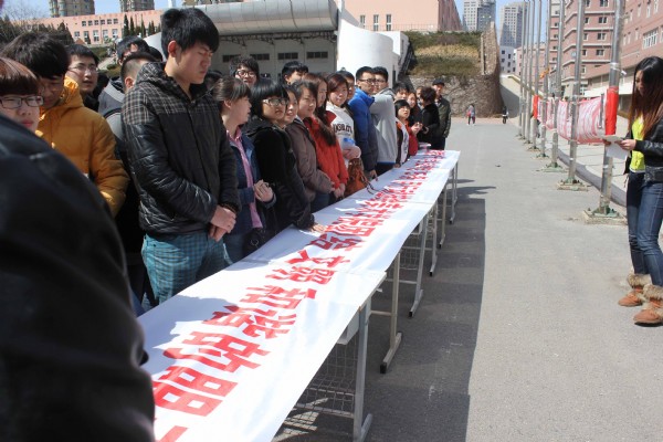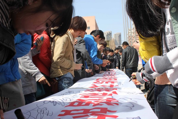 3月28日,新葡的京集团8814在校的全体学生在学院操场举行“学生自律约定15条”签名活动。
