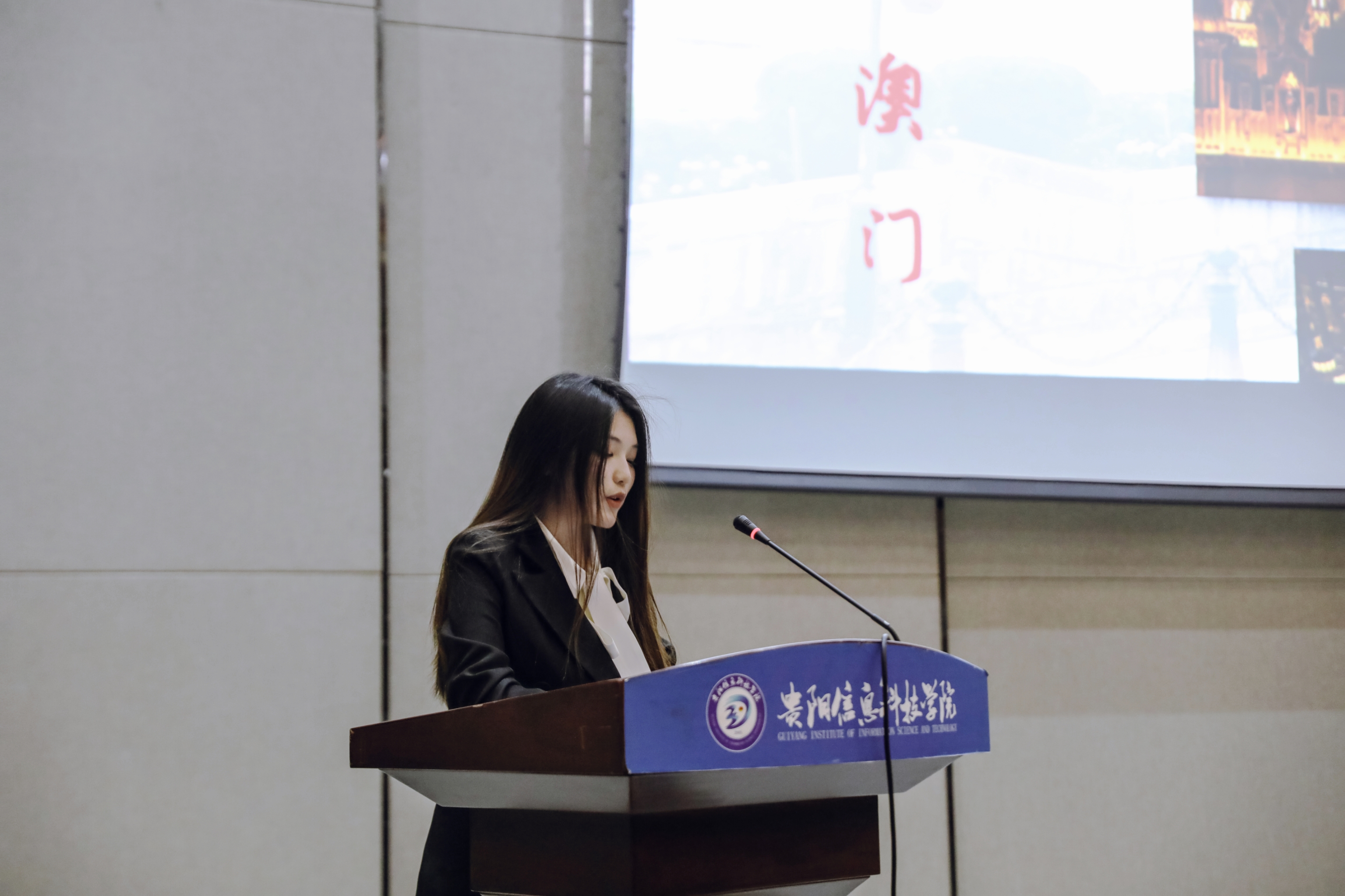 分享会上,汪胜强同学、杨菁菁同学、朱国静同学通过精美的PPT展示了14天精彩的在澳学习生活,对学校搭建优质交流学习平台以及所给予的帮助表达了衷心的感谢,同时也为在场的同学们送上了美好寄语,鼓励大家积极参加学校组织的各类国(境)外交流学习项目,开拓眼界,挑战自我。