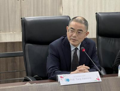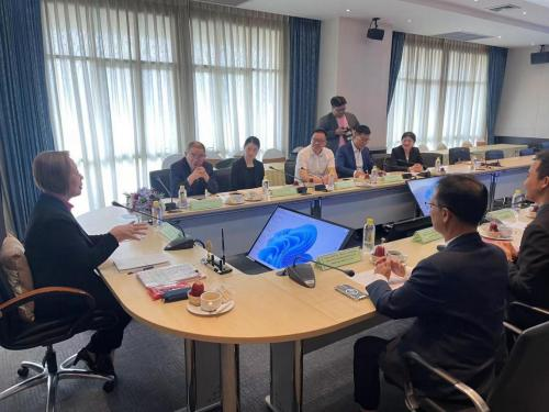 1月30日上午,唐建荣一行访问了泰国庄甲盛皇家大学, 与Sumalee Chaisuparakul 校长、Tawat Khamthongthip 国际交流处处长、Prasert Chimtoum 人文与社会学院院长等进行座谈交流。