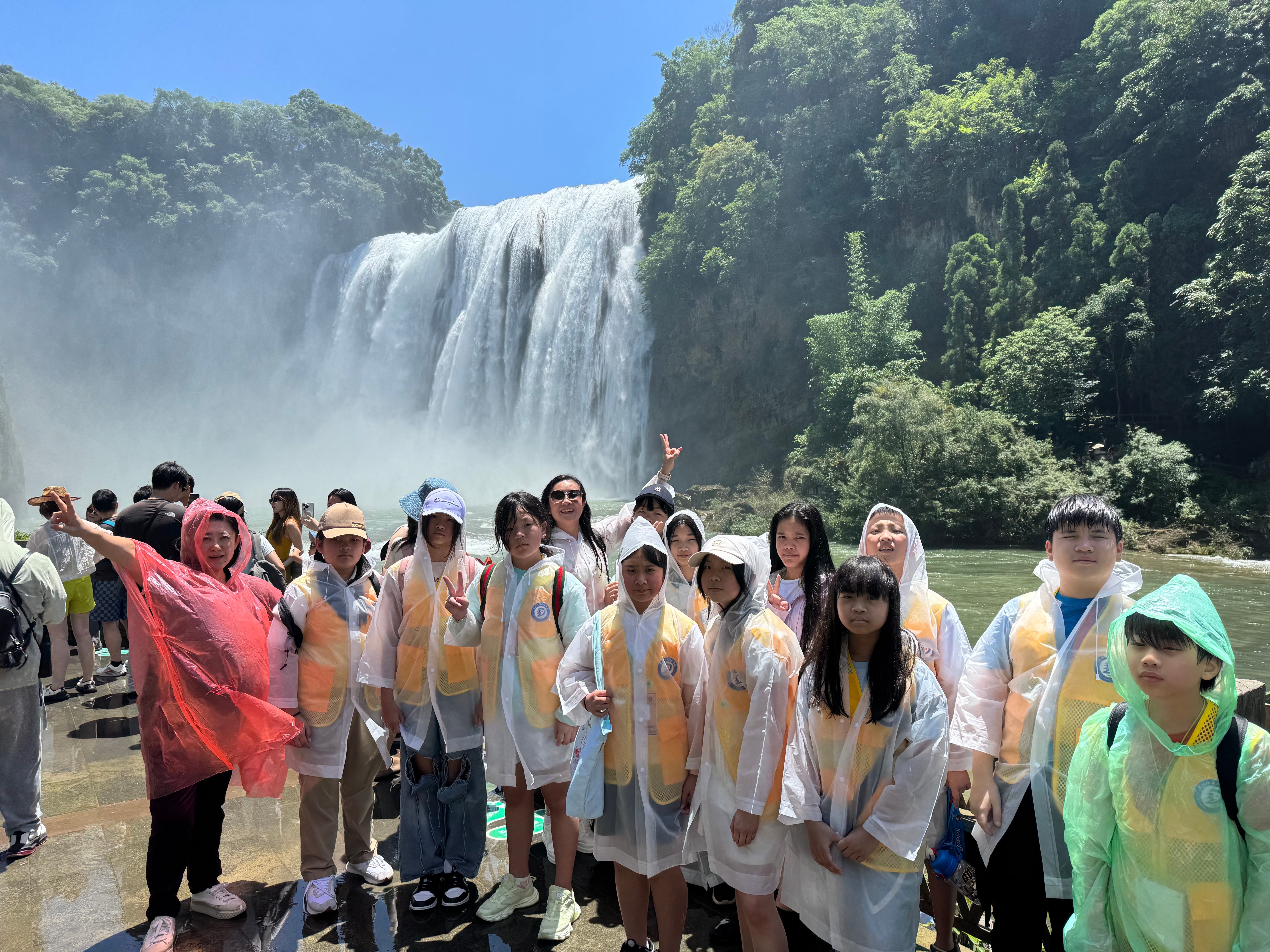 自然与人文的碰撞是行程的一大亮点。研学团先后探访黄果树瀑布、陡坡塘瀑布,近距离感受喀斯特地貌的壮美;漫步青岩古镇、甲秀楼,在石板路与古建筑间品读贵州历史;闯进“石头王国”夜郎谷,惊叹于非遗与艺术的跨界融合;在黔灵公园与大熊猫、猕猴相遇,感受人与自然的和谐共生。