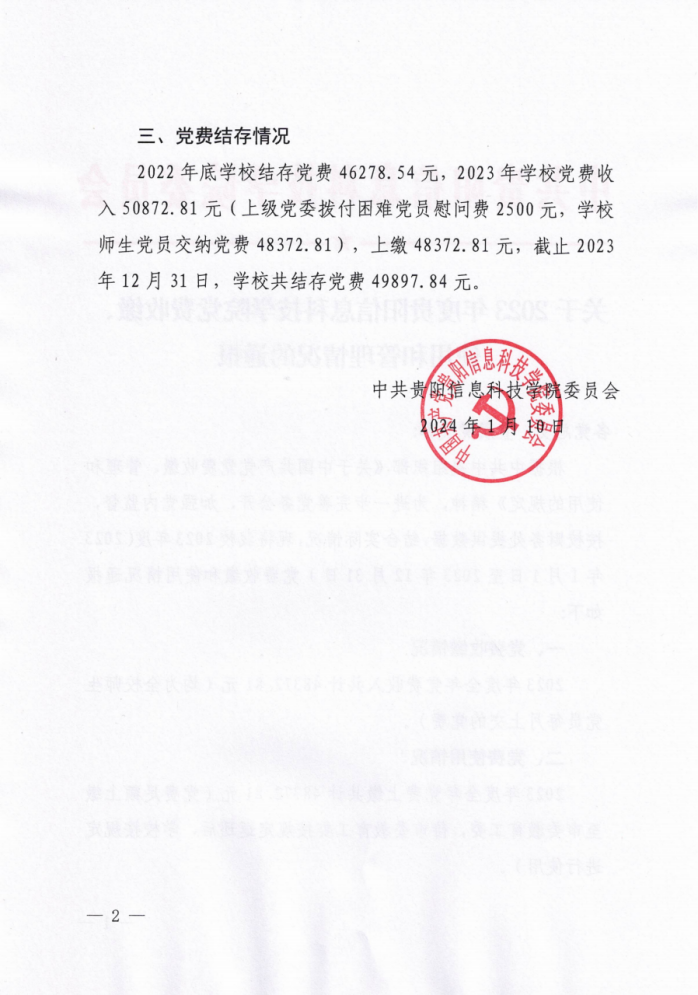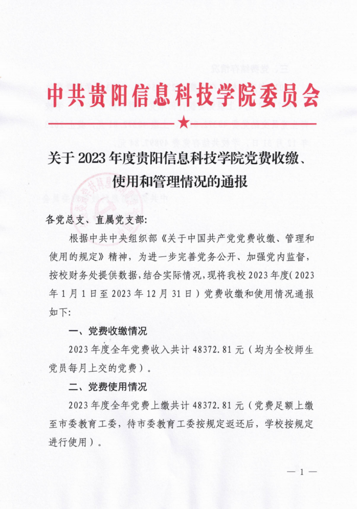 转发:关于2023年度pp电子官方网站党费收缴、使用和管理情况的通报