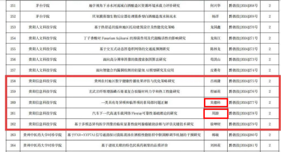 2024年1月,由贵州省教育厅科技处组织的2024年度自然科学研究项目(青年项目)中,pp电子共获立5个项目,其中我院获立2个项目。