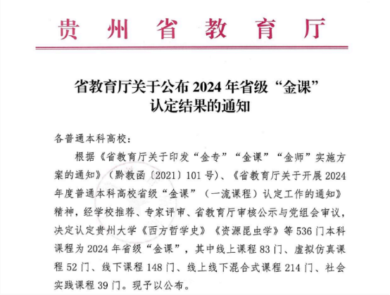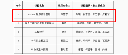 喜报丨我院1门课程认定为省级“金课”(一流课程) 信息工程学院 2025-01-03 根据《省教育厅关于公布2024年度省级“金课”认定结果的通知》文件,我院陈蓉蓉教师团队课程《Python程序设计基础》被认定为2024年省级“金课”(一流课程)。