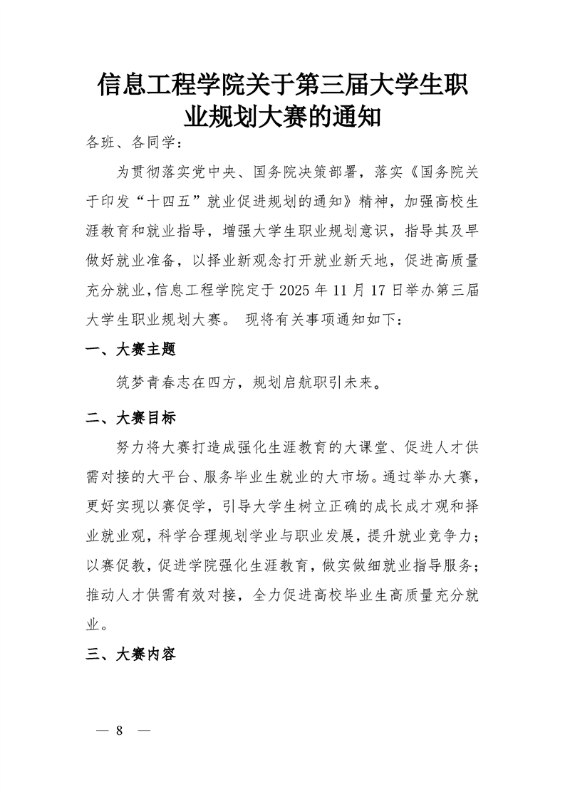 信息工程学院关于第三届大学生职 业规划大赛的通知