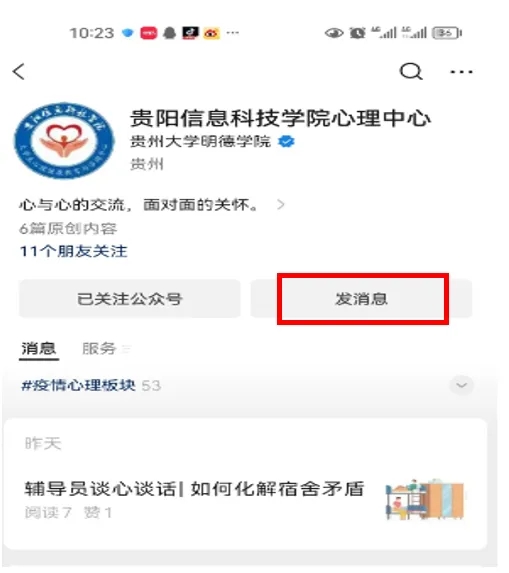 1.微信搜索“pp电子官方网站心理中心”,点击“关注公众号”。