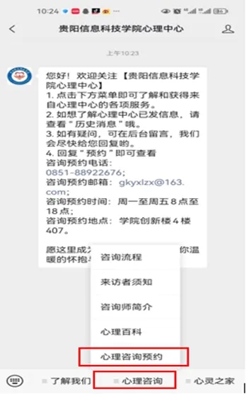 3.点击“心理咨询”栏“心理咨询预约”,即可开始心理咨询预约。