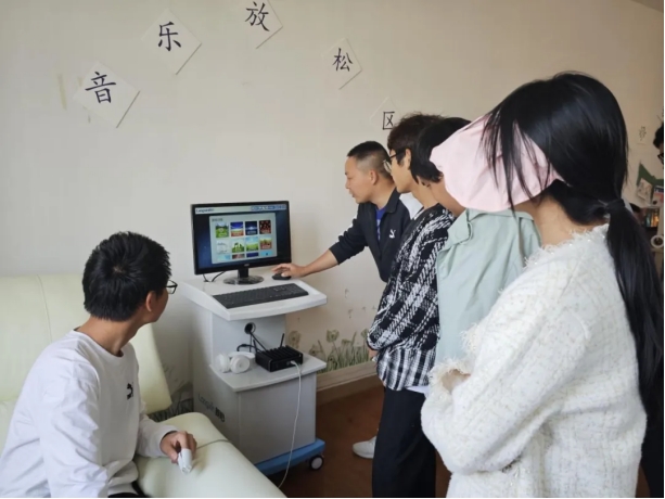 首先,心理中心的张晓欢老师向同学们介绍心理中心的职能、心理咨询的预约流程及保密原则、心理健康教育活动的开展情况,同学们不仅参观了预约接待区、心理图书阅览区、心理咨询室、心理宣泄室、心理放松室、团体辅导室、沙盘游戏区等功能室,还在心理老师的带领下体验了心理放松室的各种放松器械。