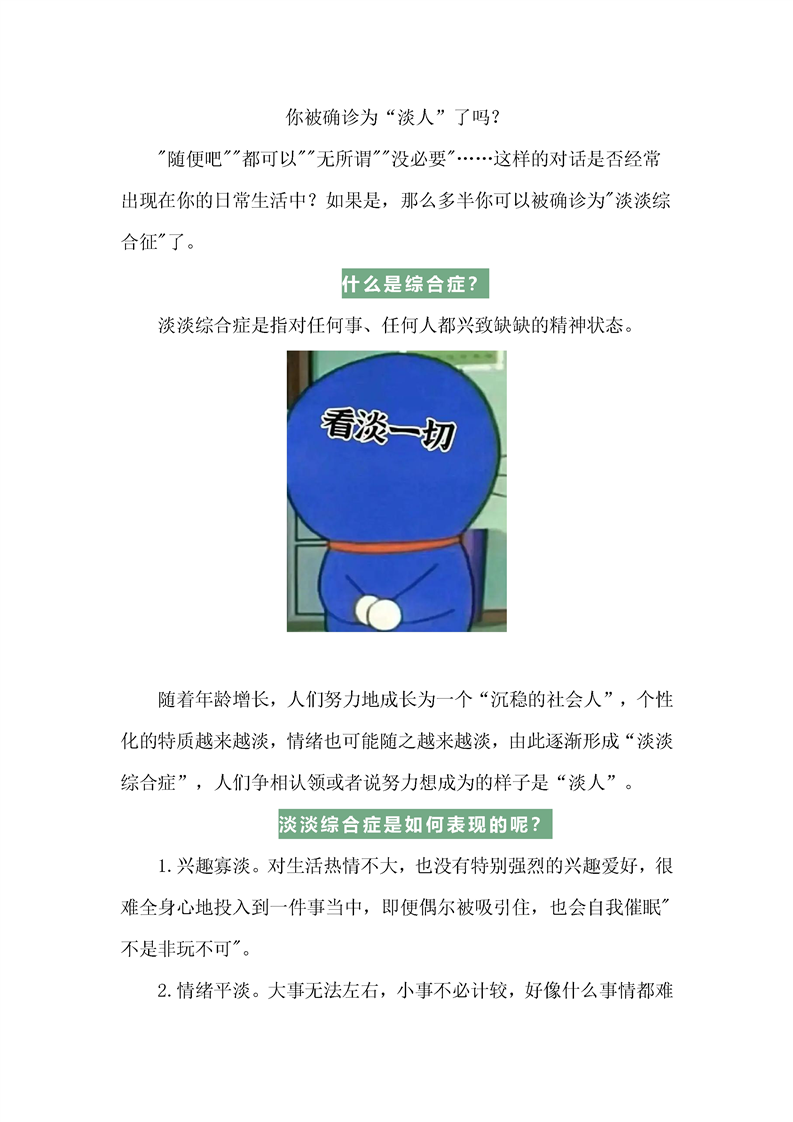心理知识科普-淡淡综合症