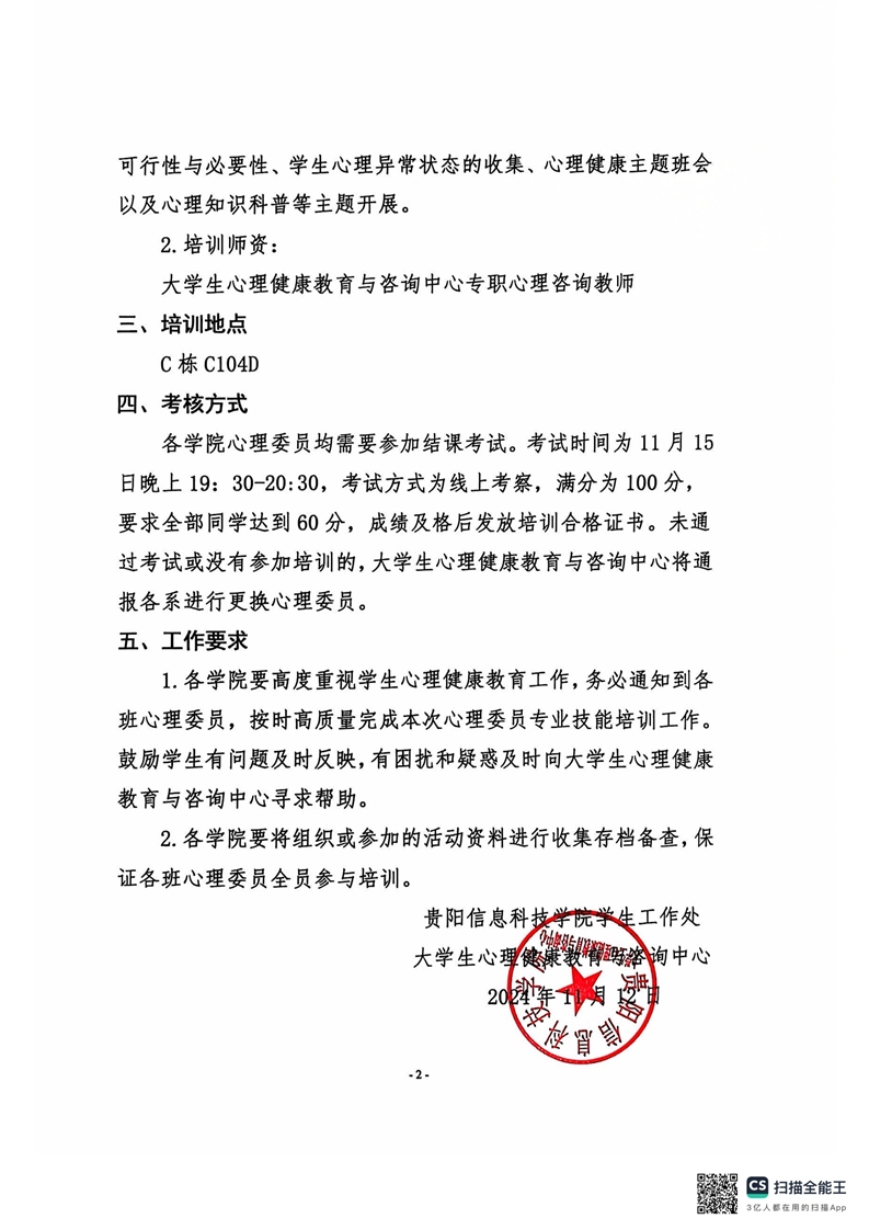 关于2024年班级心理委员技能培训的通知