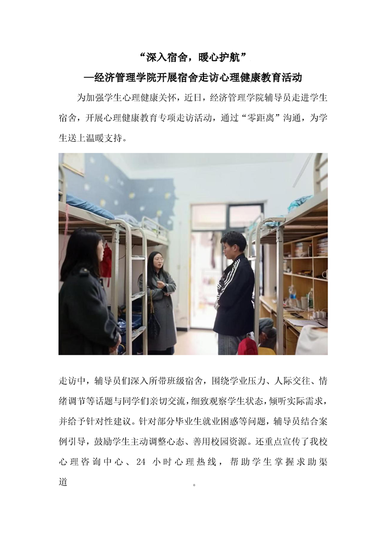 ”深入宿舍,暖心护航“——经济管理学院开展宿舍走访心理健康教育活动