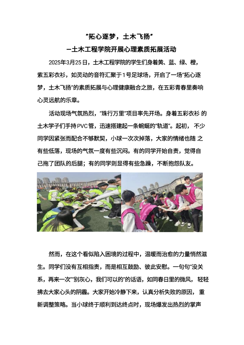 “拓心逐梦,土木飞扬”——土木工程学院开展心理素质拓展活动