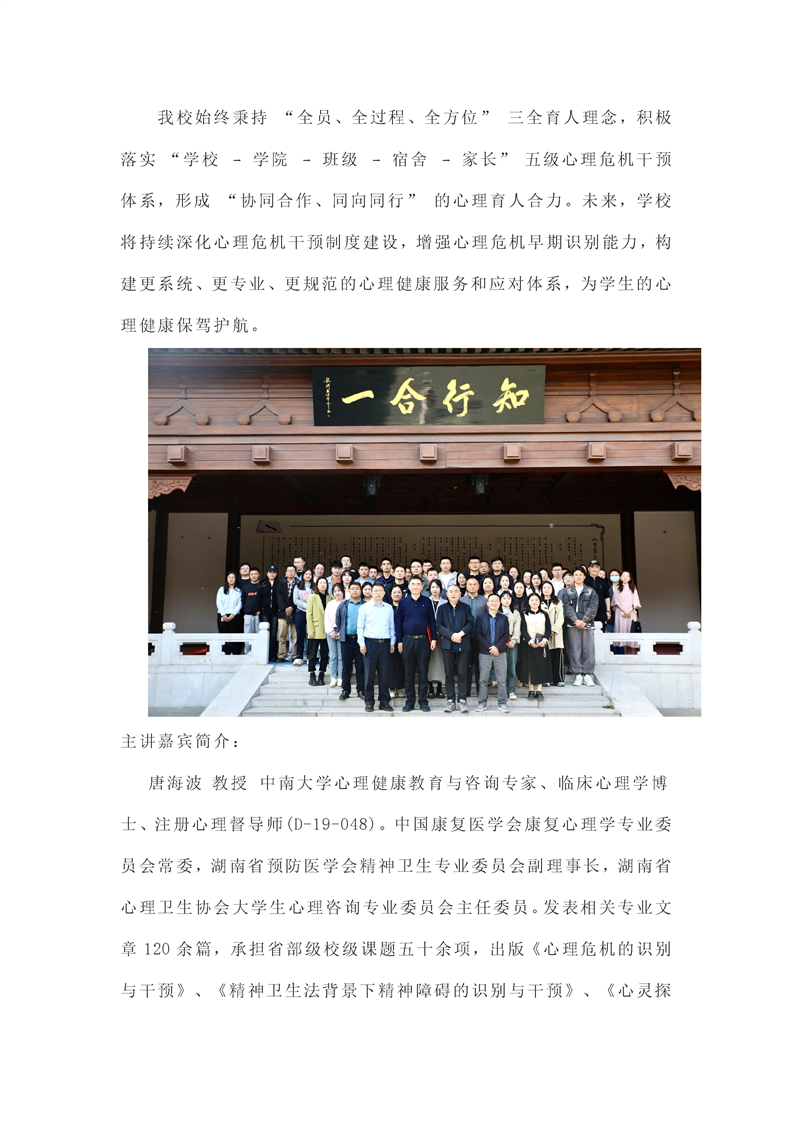 《精神卫生法背景下大学生心理危机干预面临的困惑与应对策略》专题讲座预告