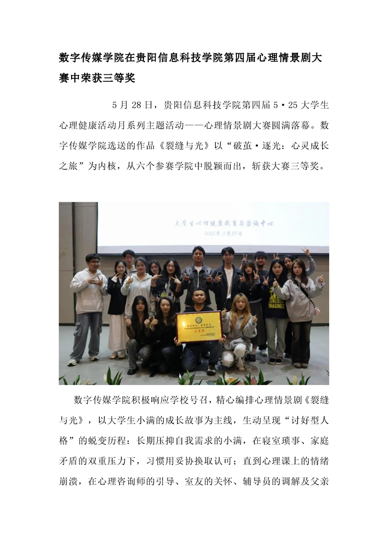 数字传媒学院在pp电子官方网站第四届心理情景剧大赛中荣获三等奖