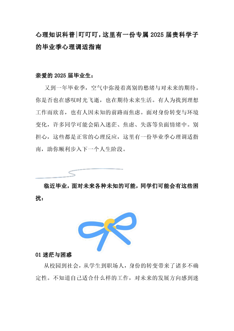 心理知识科普|叮叮叮,这里有一份专属2025届贵科学子的毕业季心理调适指南