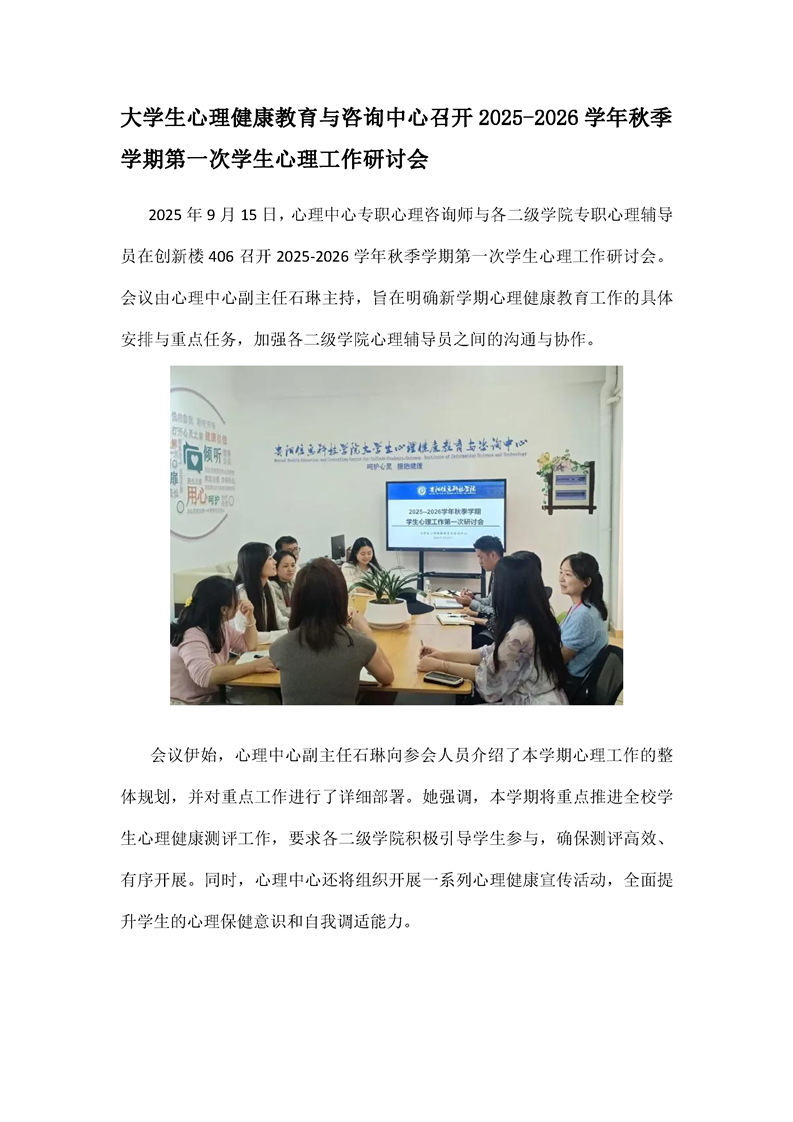 大学生心理健康教育与咨询中心召开2025-2026学年秋季学期第一次学生心理工作研讨会
