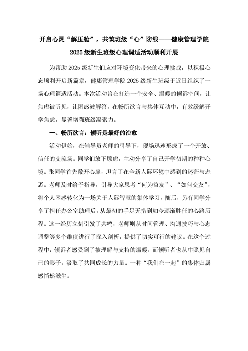 开启心灵“解压舱”,共筑班级“心”防线 ——健康管理学院2025级新生班级心理调适活动顺利开展