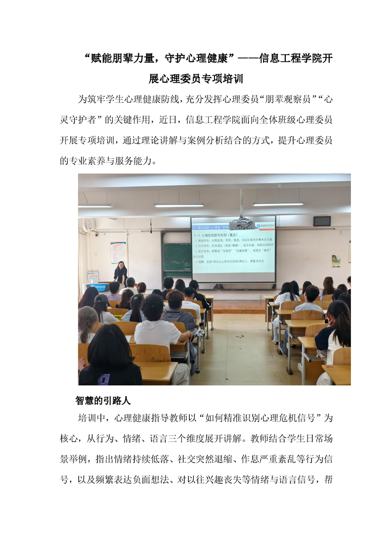 “赋能朋辈力量,守护心理健康”——信息工程学院开展心理委员专项培训