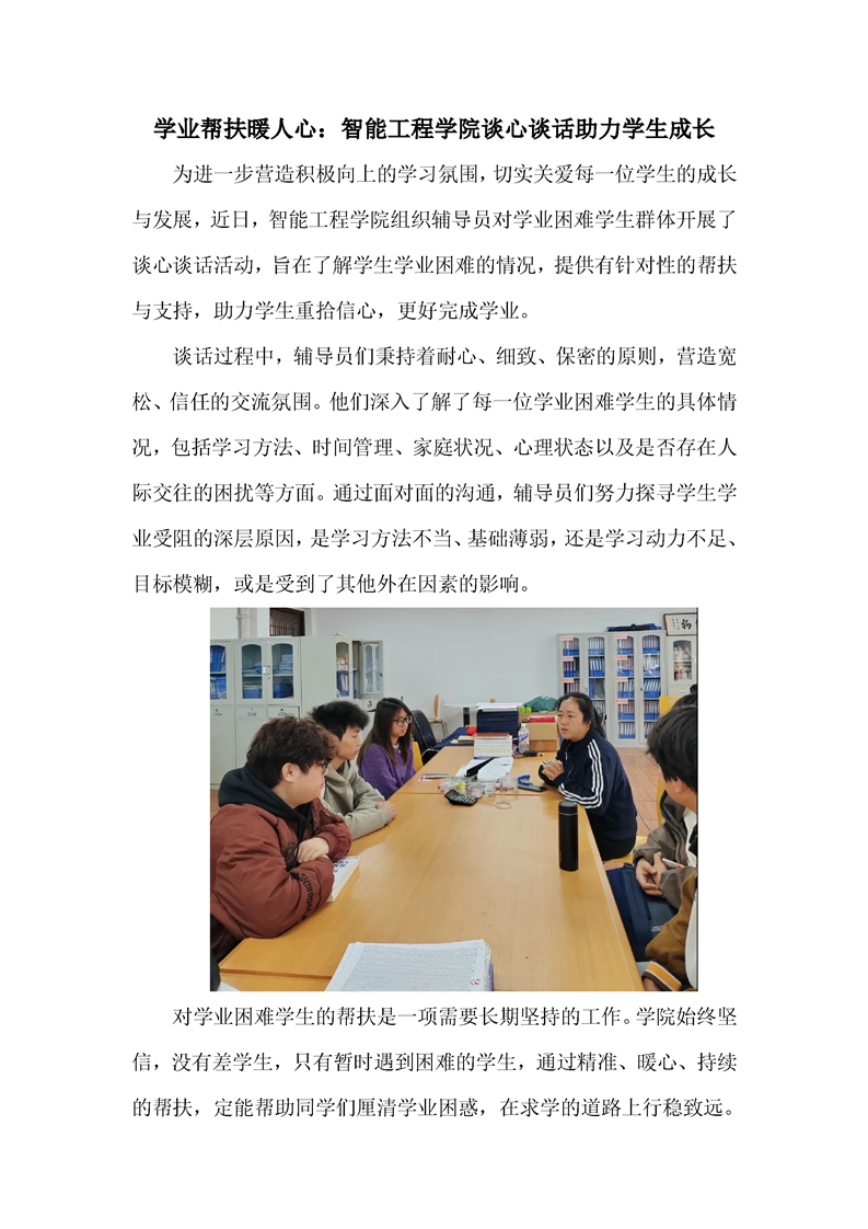 学业帮扶暖人心:智能工程学院谈心谈话助力学生成长