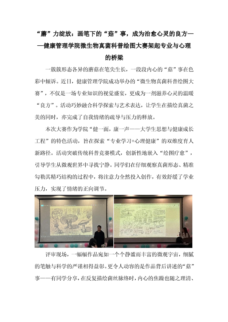 “蘑”力绽放:画笔下的“菇”事,成为治愈心灵的良方——健康管理学院微生物真菌科普绘图大赛架起专业与心理的桥梁