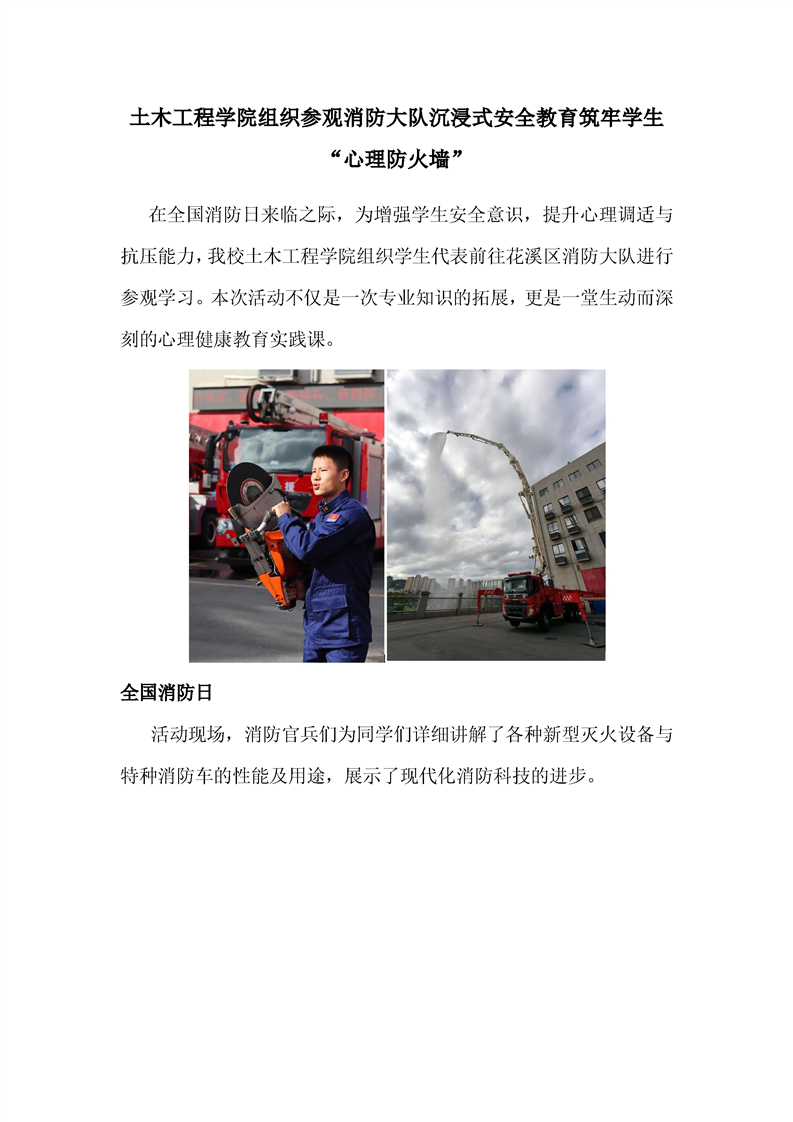 土木工程学院组织参观消防大队沉浸式安全教育筑牢学生“心理防火墙”