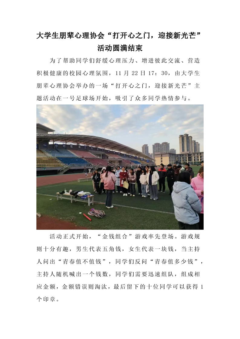 大学生朋辈心理协会“打开心之门,迎接新光芒”活动圆满结束