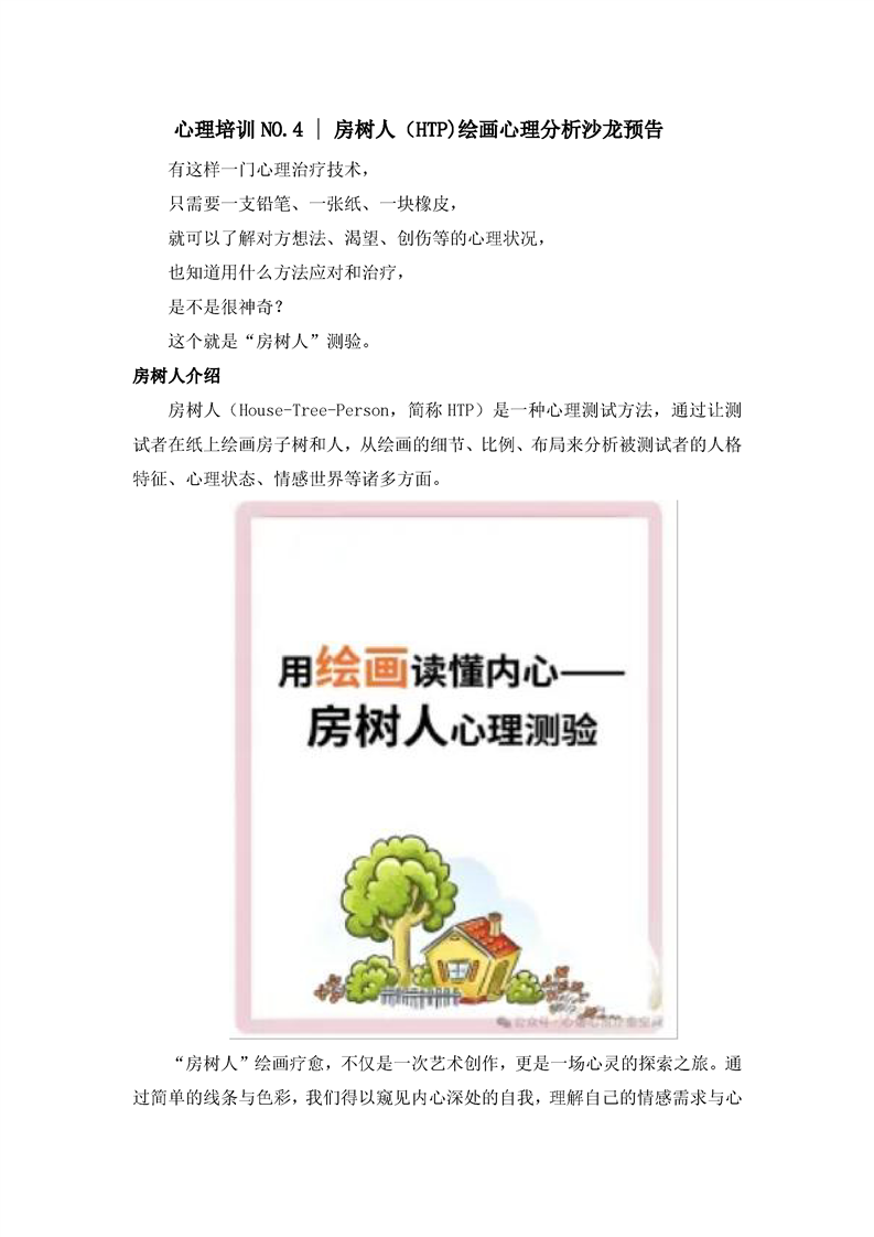 心理培训NO.4 | 房树人(HTP)绘画心理分析沙龙预告