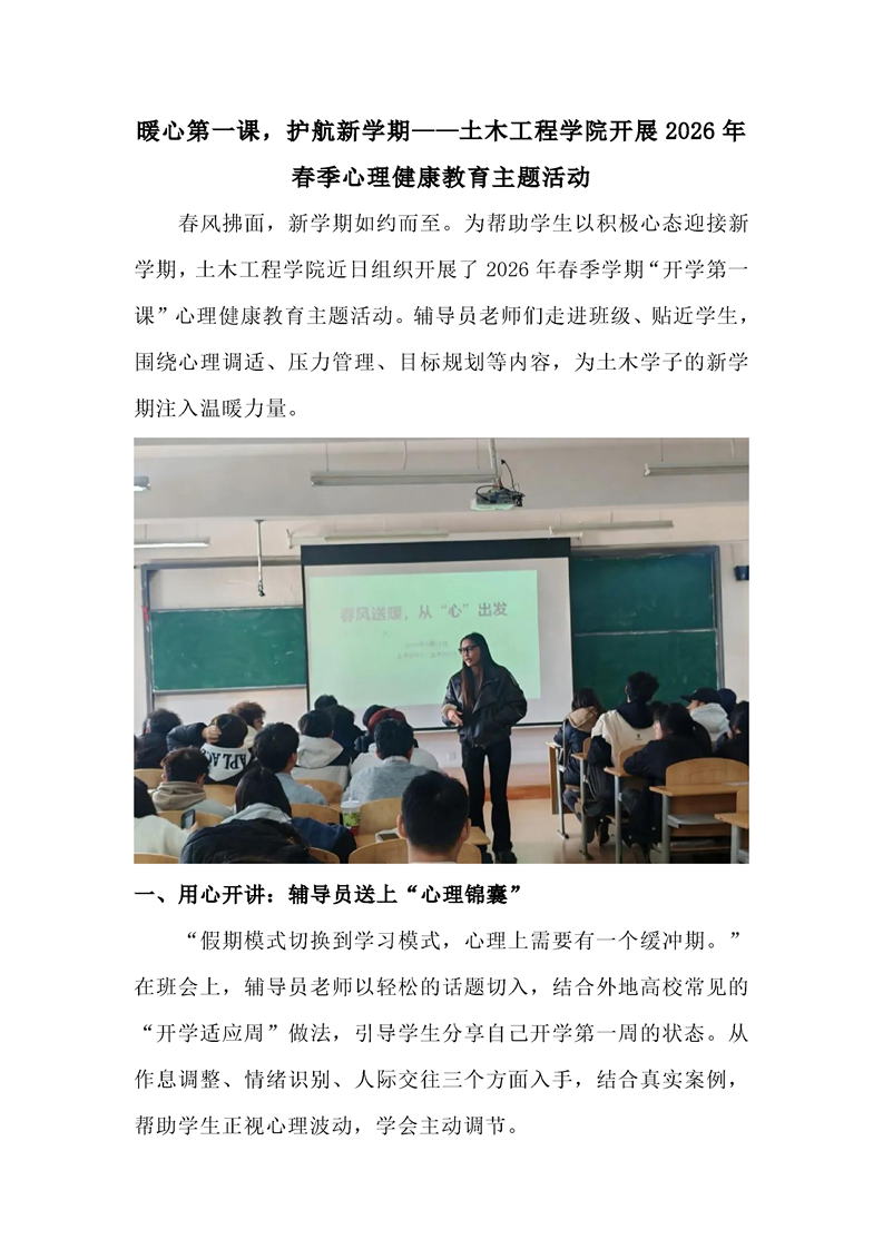 暖心第一课,护航新学期——土木工程学院开展2026年春季心理健康教育主题活动