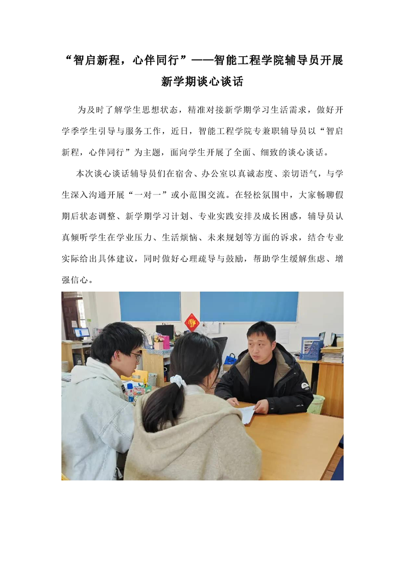 “智启新程,心伴同行”——智能工程学院辅导员开展新学期谈心谈话
