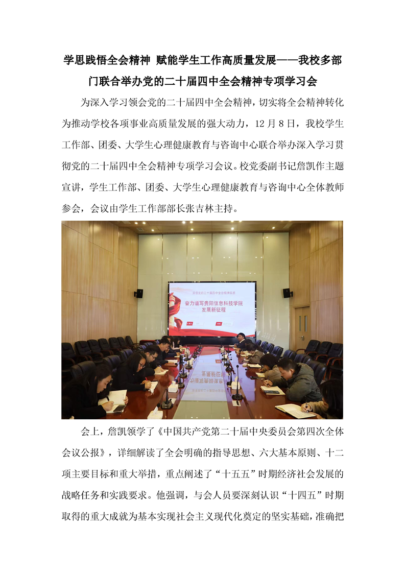 学思践悟全会精神 赋能学生工作高质量发展——pp电子多部门联合举办党的二十届四中全会精神专项学习会