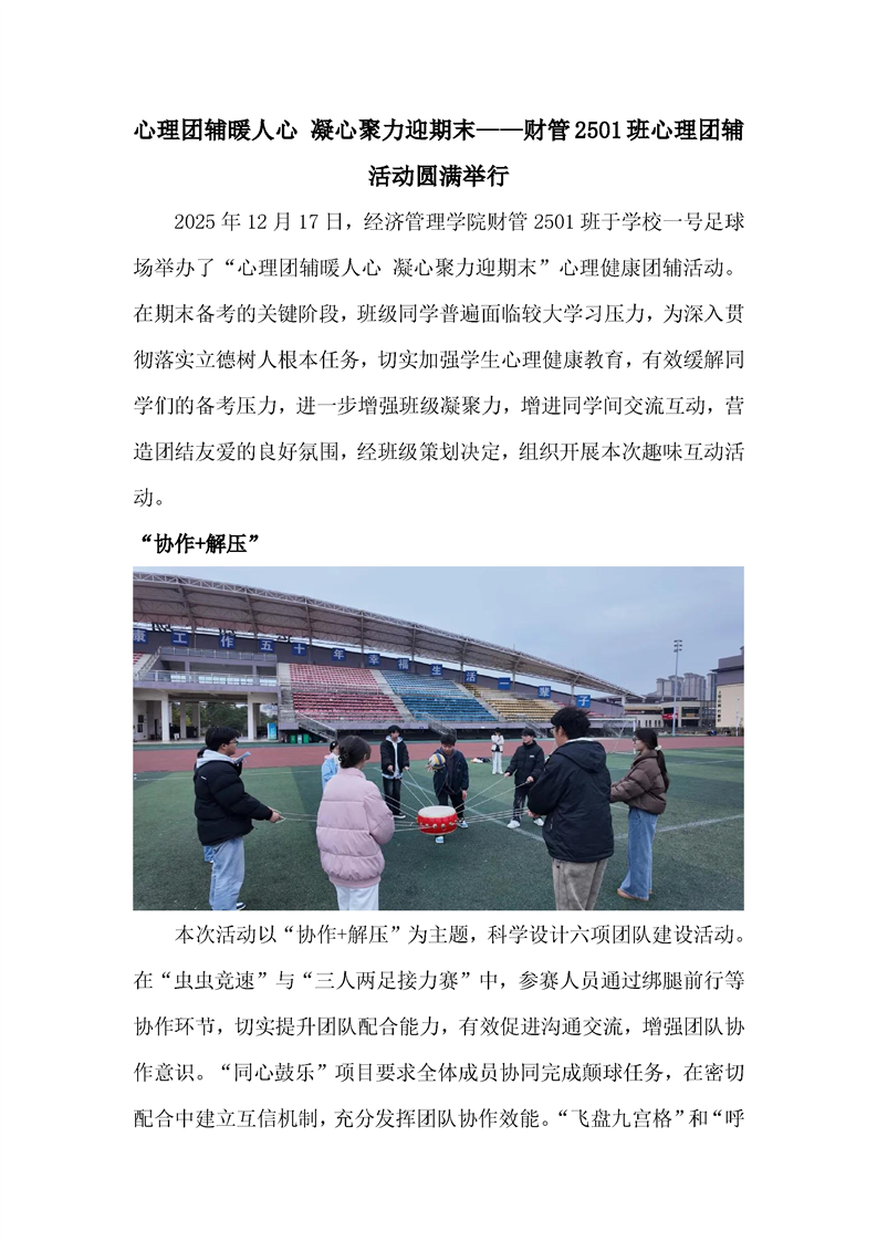 心理团辅暖人心 凝心聚力迎期末——财管2501班心理团辅活动圆满举行