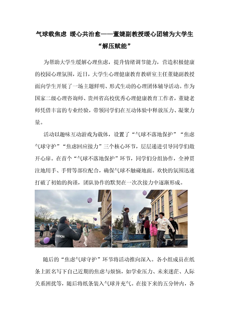 气球载焦虑 暖心共治愈——董婕副教授暖心团辅为大学生“解压赋能”