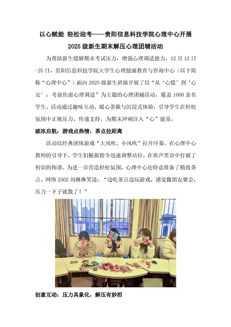 以心赋能 轻松迎考——pp电子官方网站心理中心开展2025级新生期末解压心理团辅活动